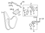 Front Cover Screw, Rear Cover Screw, Cover Screw, Air Duct Screw, Water Pump Assembly Mount Bolt, Vent Tube Bolt, Vent Tube Screw, Cooling Pipe Bolt, Heat Shield Bolt, Temp Sensor Bolt, Mount Bracket Bolt, Power Steering Pump Rear Bolt, Oil Line Screw, Oil Pipe Bolt, Oil Tank Fastener, Engine Air Intake Hose Screw, Engine Coolant Pipe Bolt, Hexagon Head Bolt